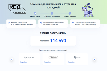 21.10.2025Стартовал набор на бесплатные курсы по программированию, ИИ и робототехнике «Код будущего»